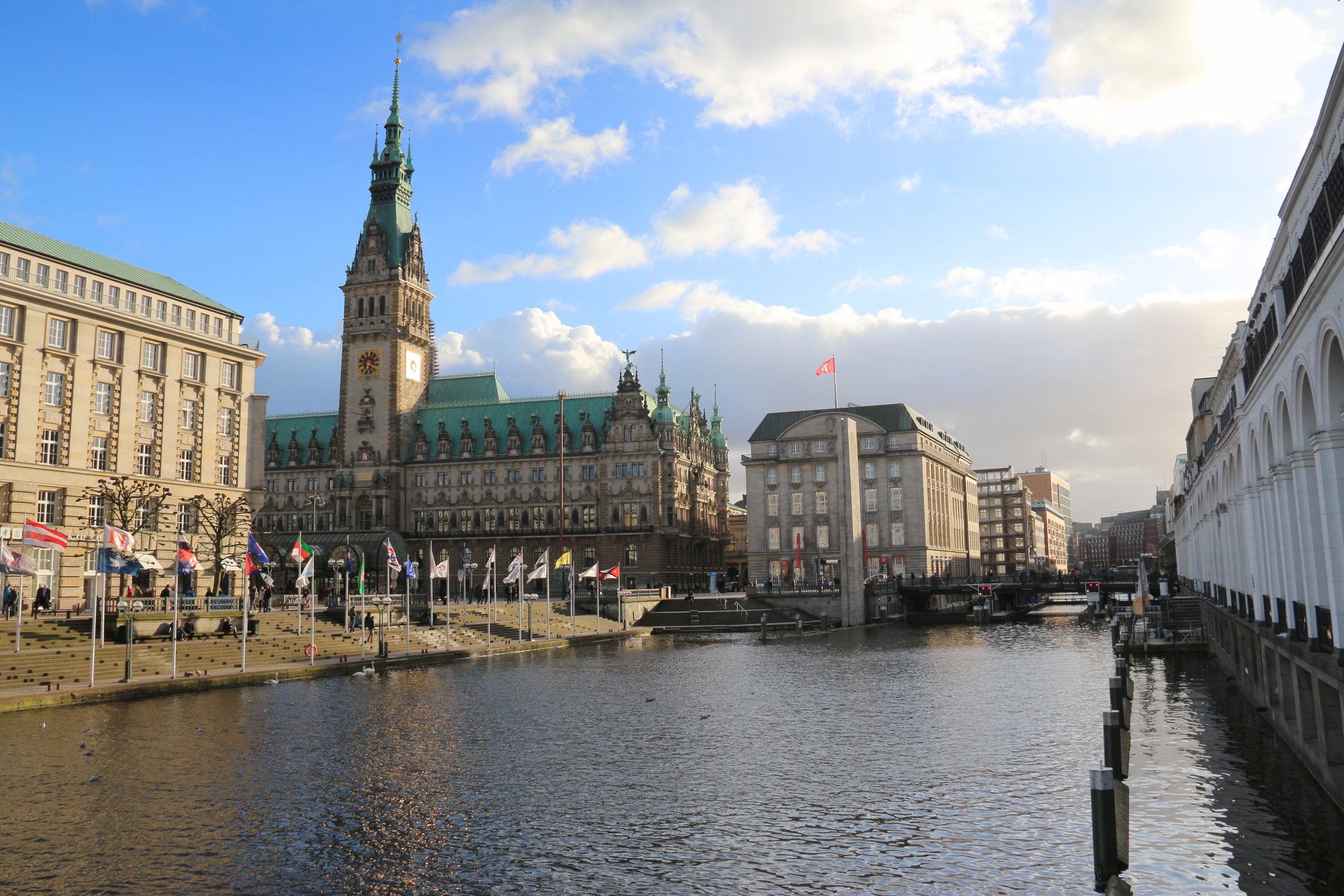 Feita essa etapa cultural, histórica e religiosa do passeio, é legal também conhecer a prefeitura, que fora construída entre 1886 e 1897, a imensa estrutura em estilo neorrenascentista é o símbolo da cidade. Essa é a quinta prefeitura da história de Hamburgo, sendo que as demais foram arrasadas em guerra e incêndios.