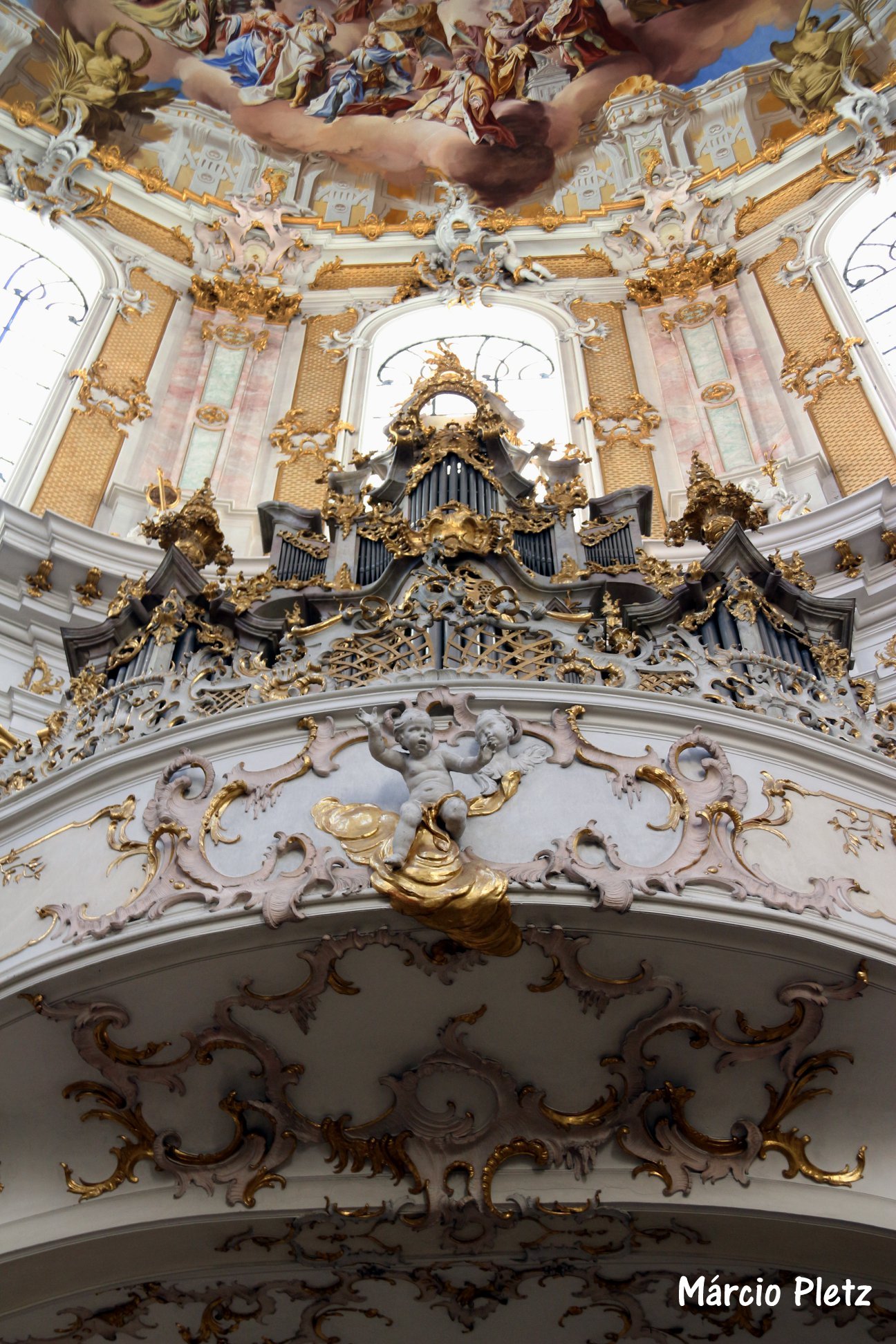 No interior da abadia, o estilo rococó chama a atenção. Em francês, rocaille, significa “concha”. Esse tipo de expressão artística está associado a certas formas decorativas como a técnica de incrustação de conchas e vidro. O estilo predominante do local foi elaborado por Johann Baptist e Johann Georg Ubelhör. Já os afrescos da abadia de Ettal são de autoria de Martin Knoller. Vale uma lenta contemplação de cada detalhe nas fotos.