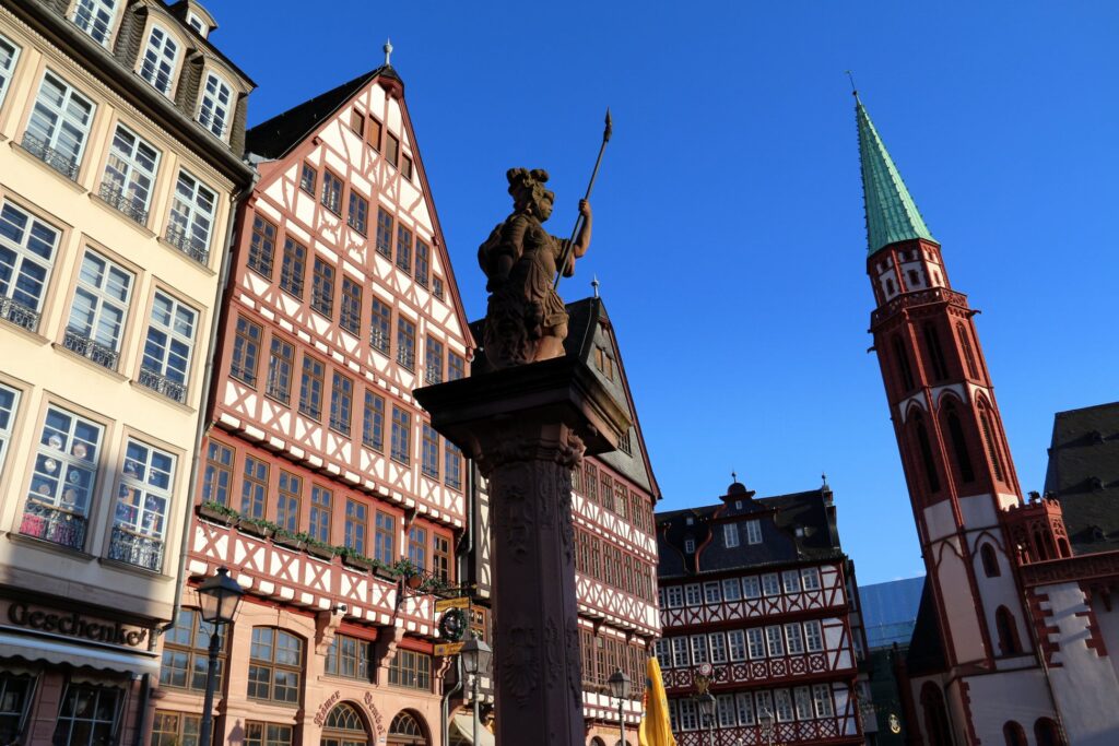 Basicamente, Frankfurt se divide em duas áreas: uma histórica e outra moderna. Localizada no centro da cidade antiga, está a praça de Römerberg. É ali que está situada a Gerechtigkeitsbrunnen. O enorme nome em alemão contempla a fonte da justiça. No mesmo local, localiza-se Ostzeile, seis “casas” reconstruídas de acordo com modelos dos séculos XV e XVI, que são um dos símbolos de Frankfurt.