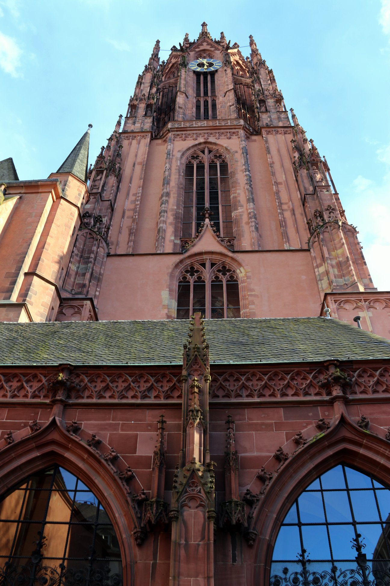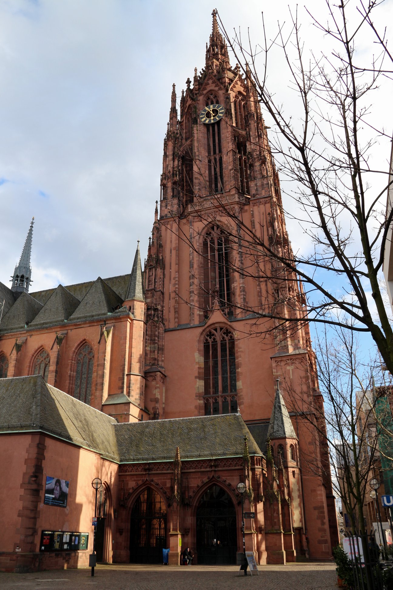 A Catedral de Frankfurt é também conhecida como Catedral de São Bartolomeu passou por diversas reformas ao longo dos anos, mas a maior parte dos materiais que a compõe nos dias de hoje pertencem ao século 15. Durante a Segunda Guerra Mundial, os bombardeios que arrasaram com Frankfurt não destruíram totalmente a catedral. O prédio permaneceu em pé, mas com o interior queimado, esse reformado na década de 70. O título de torre mais alta da cidade dado à Catedral de Frankfurt permaneceu até a inauguração da Henninger Turm no começo dos anos 60. Porém, a subida até o topo da torre da igreja guarda uma vista impressionante da cidade.
