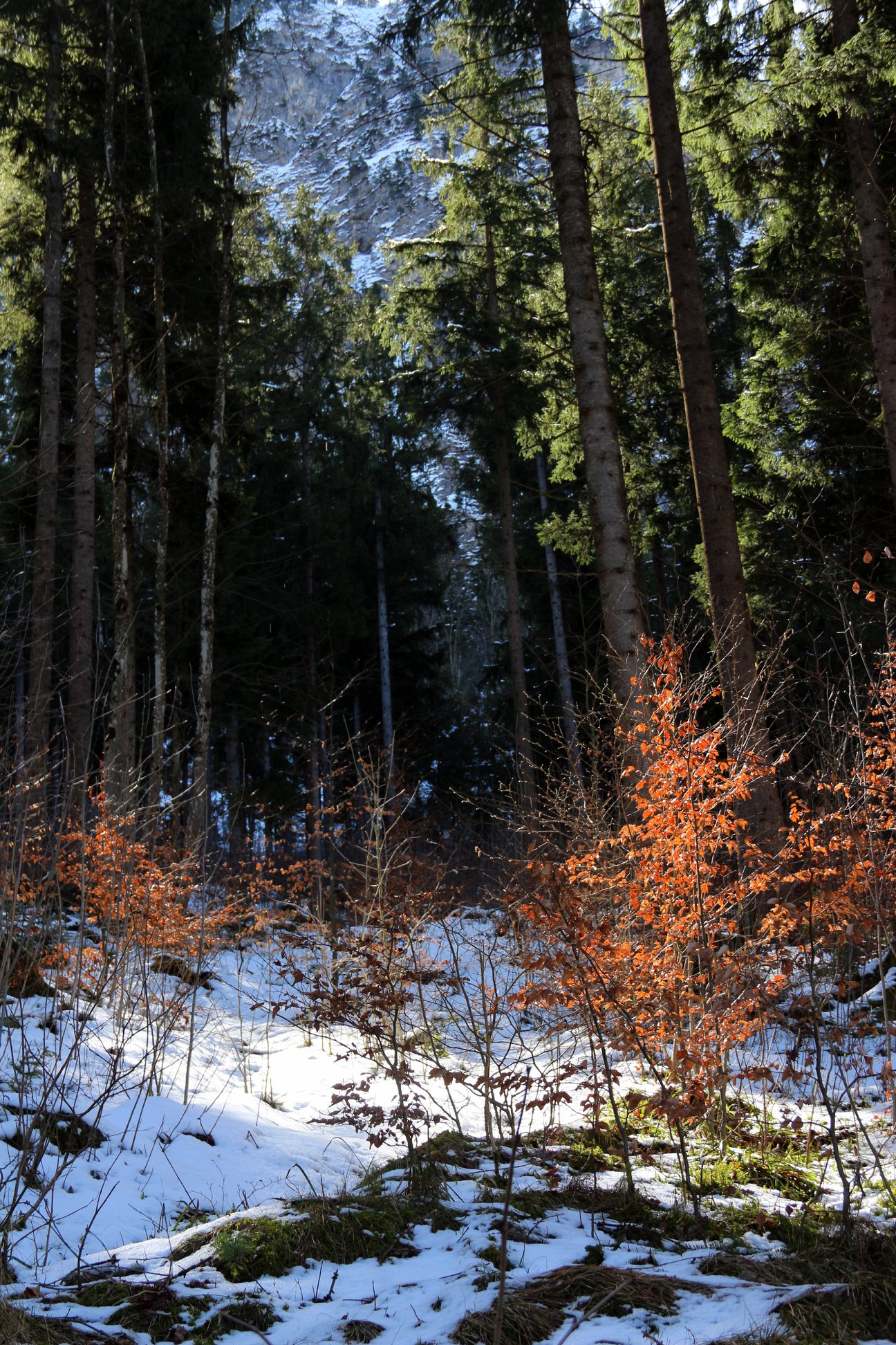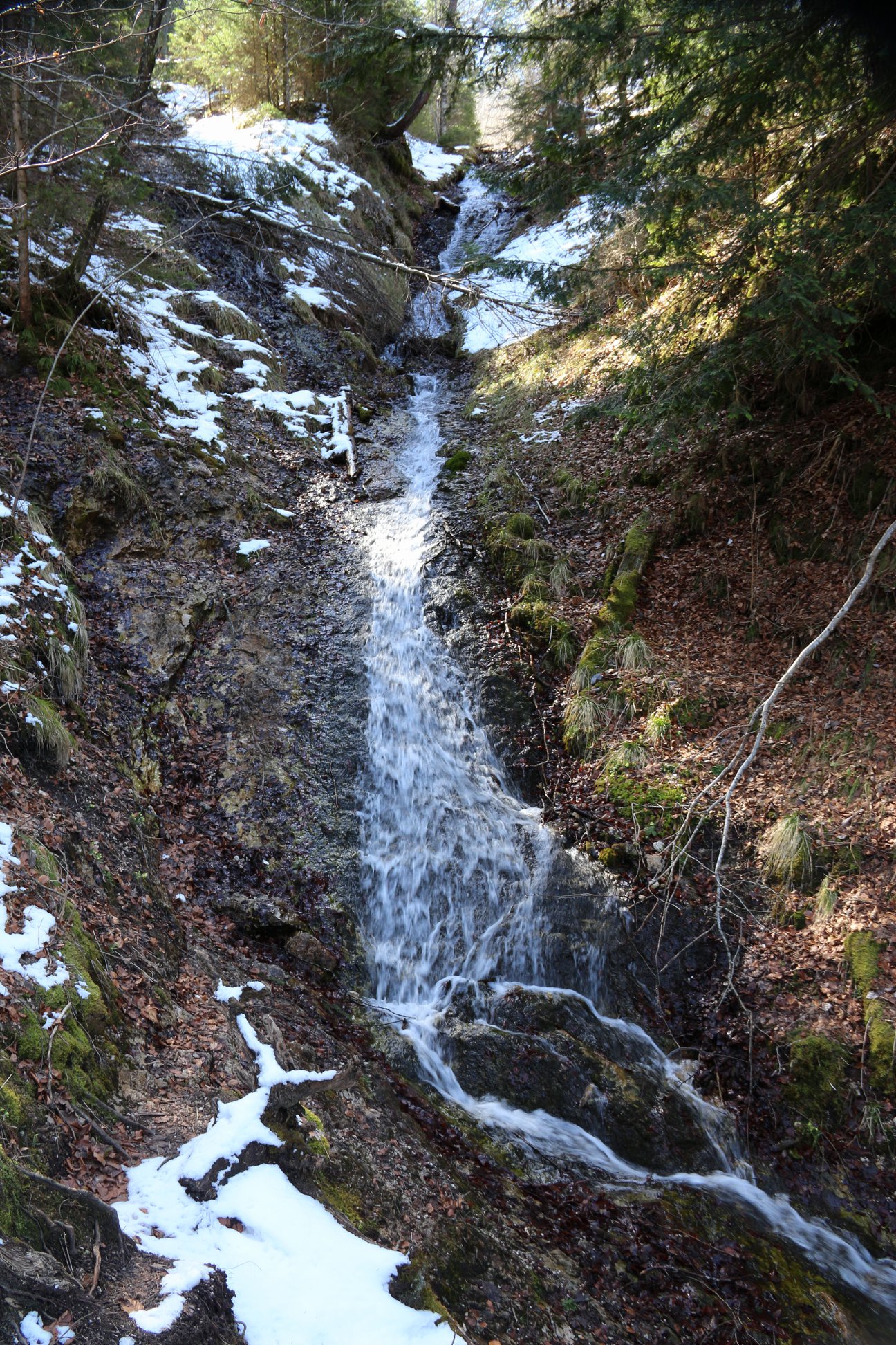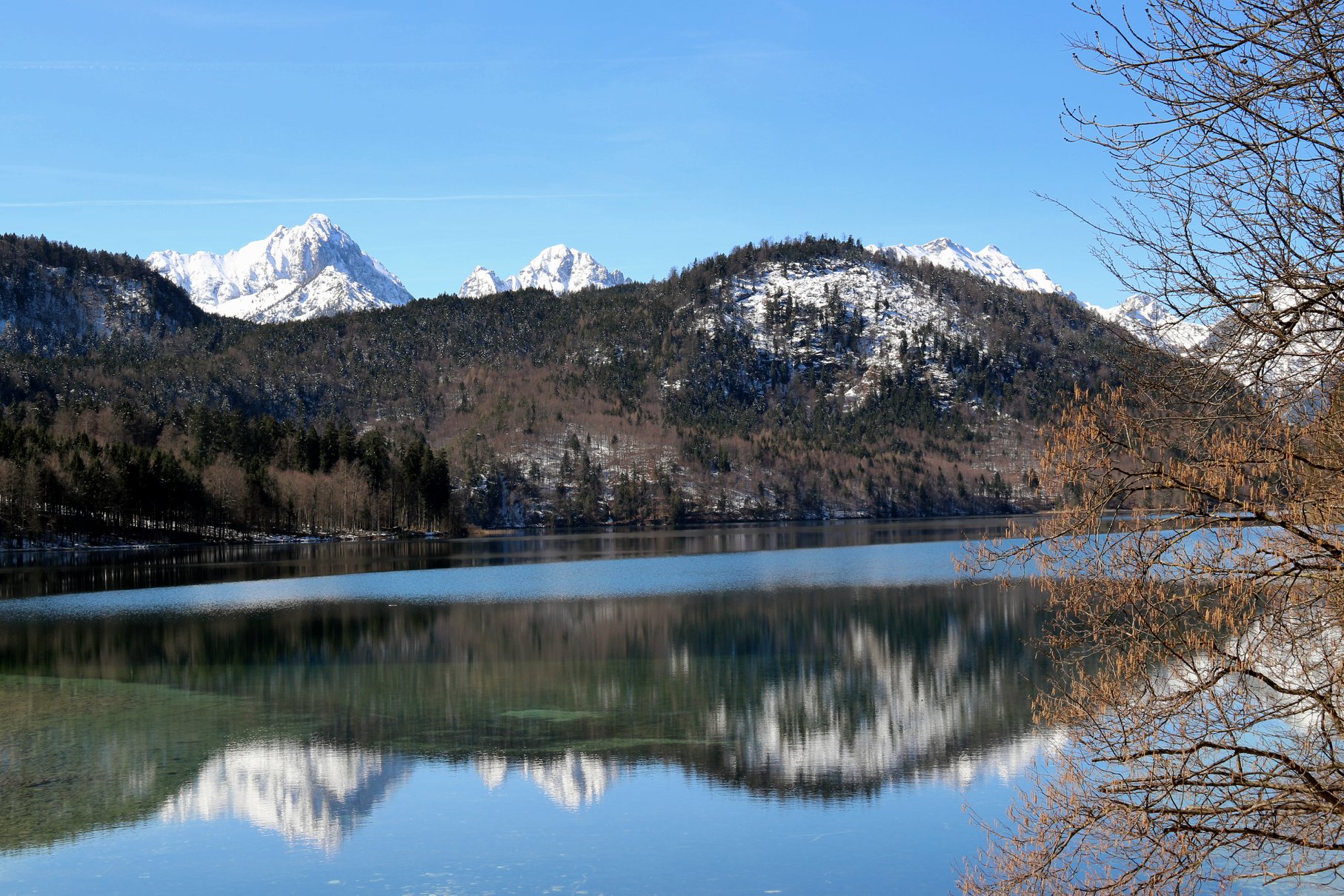 Observando o palácio de diversos ângulos é que podemos perceber a grandeza da majestosa construção e também da natureza que por lá se apresenta. A partir da área lateral do castelo, temos a vista do enorme morro nevado e com vegetação local. Além disso, chama a atenção nos registros a ponte Marienbrücke que, devido a densa neve, permaneceu fechada durante o período da viagem. Lembrando que as fotografias foram tiradas em abril, ou seja, durante a primavera.