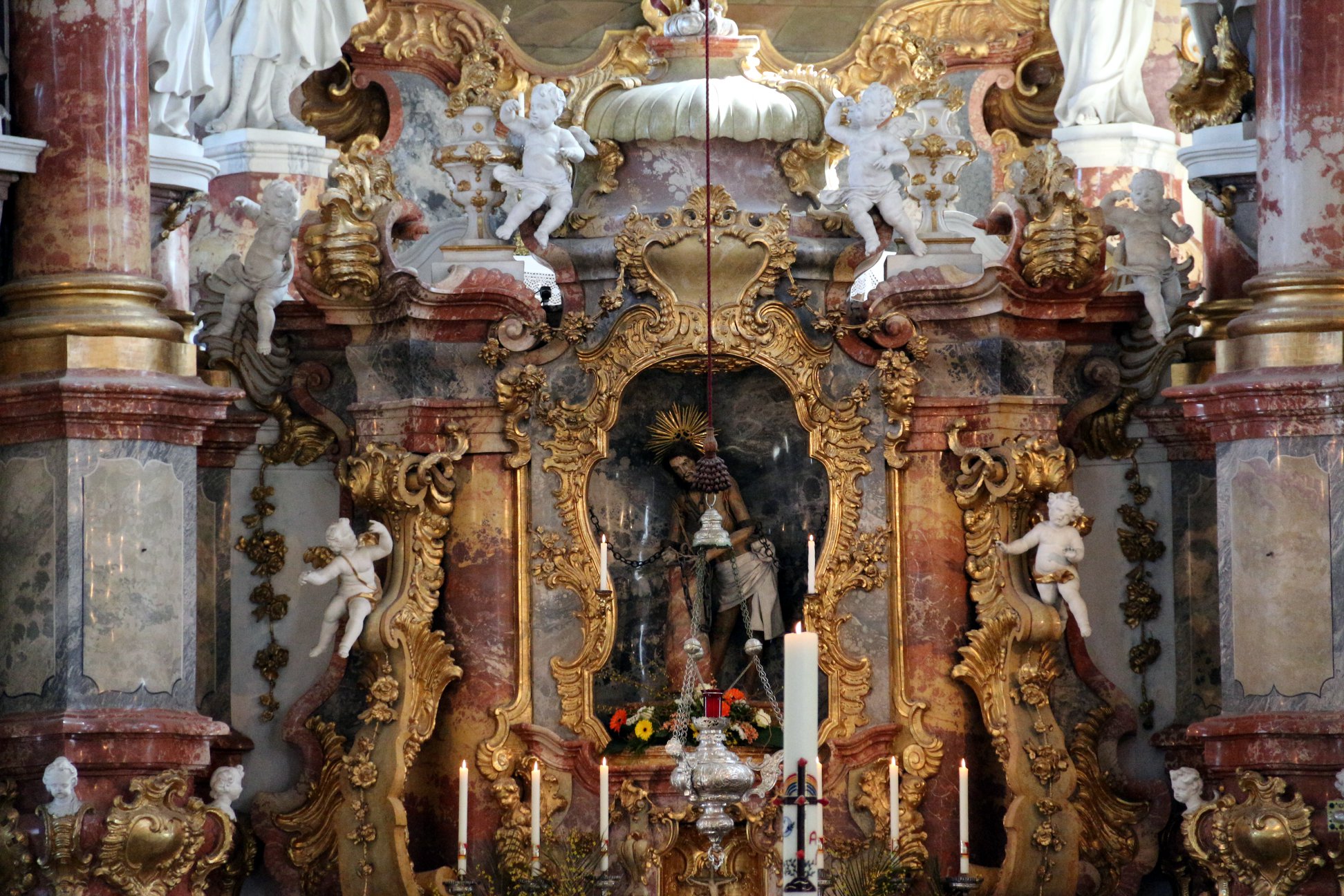 Entre 1745 e 1754, o arquiteto Dominikus Zimmermann foi o responsável pela obra onde a histórica estátua está localizada na igreja de Wies, um templo de adoração a Cristo. Dominikus também era especialista no estilo Rococó, tipo de expressão artística que está associado a técnica decorativa de incrustação de conchas e vidro. Além disso, os afrescos do teto contemplam a arte barroca e um dos detalhes dela retrata a vida eterna. O irmão do arquiteto, Johann, foi quem pintou os afrescos da bela Wieskerche.
